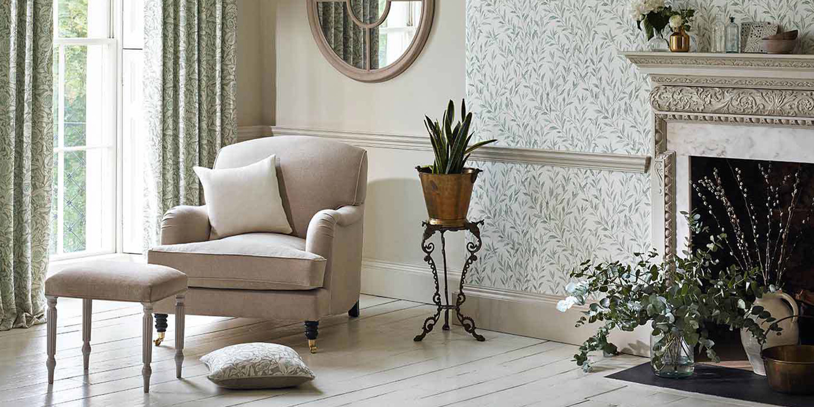 Propojení s textilem – tapeta a závěs z jedné kolekce vytvoří luxusní atmosféru.
