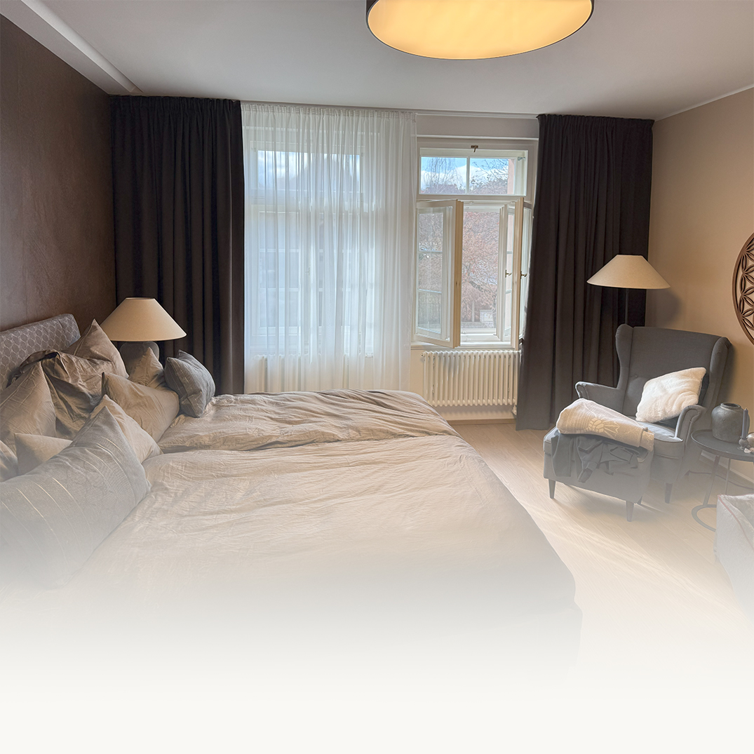 Celý projekt jsme pečlivě ladili k barevnému konceptu interiéru. Každý detail byl konzultován s klientem, aby výsledné textilní dekorace dokonale zapadaly do prostoru a podtrhovaly jeho jedinečnou atmosféru. Vznikla tak dokonalá barevná harmonie v kombinaci s elegancí a funkčností.